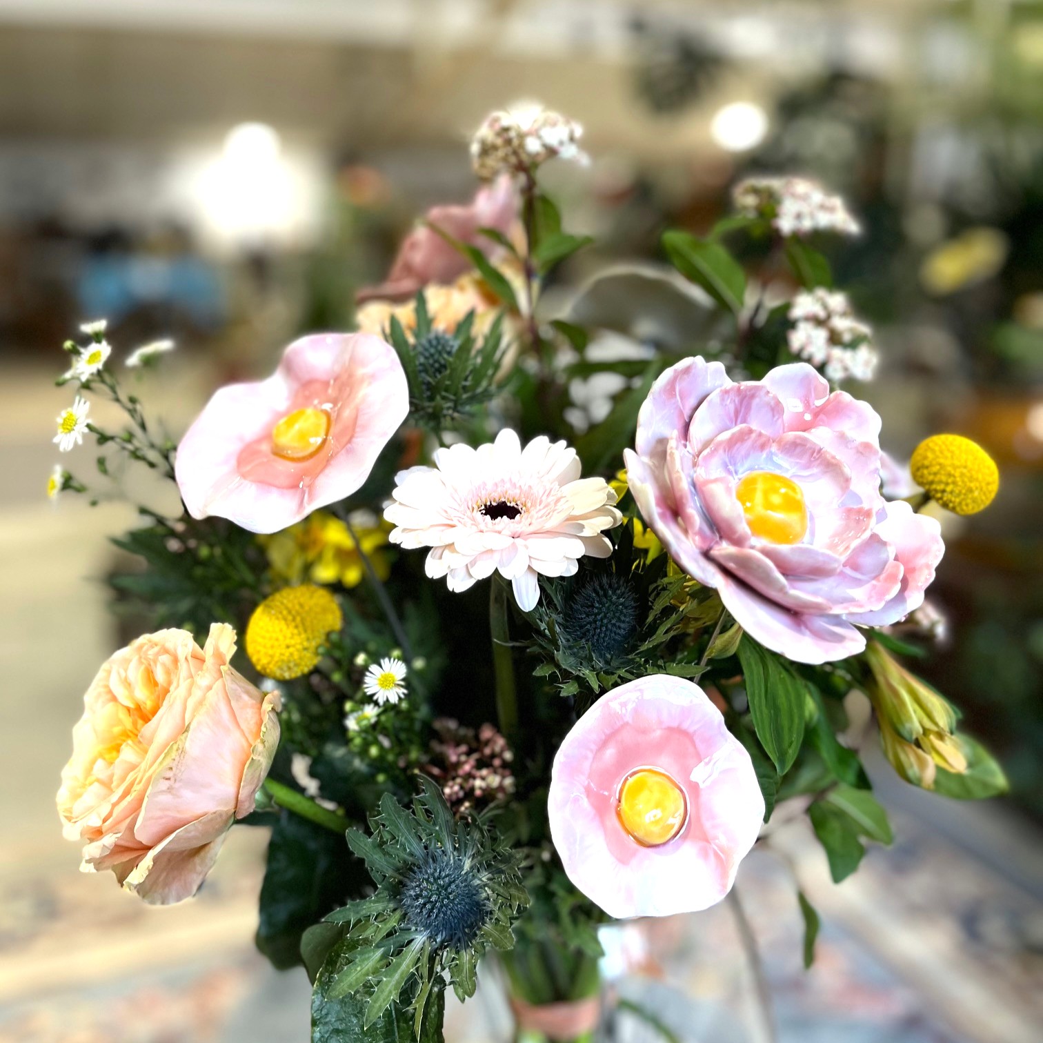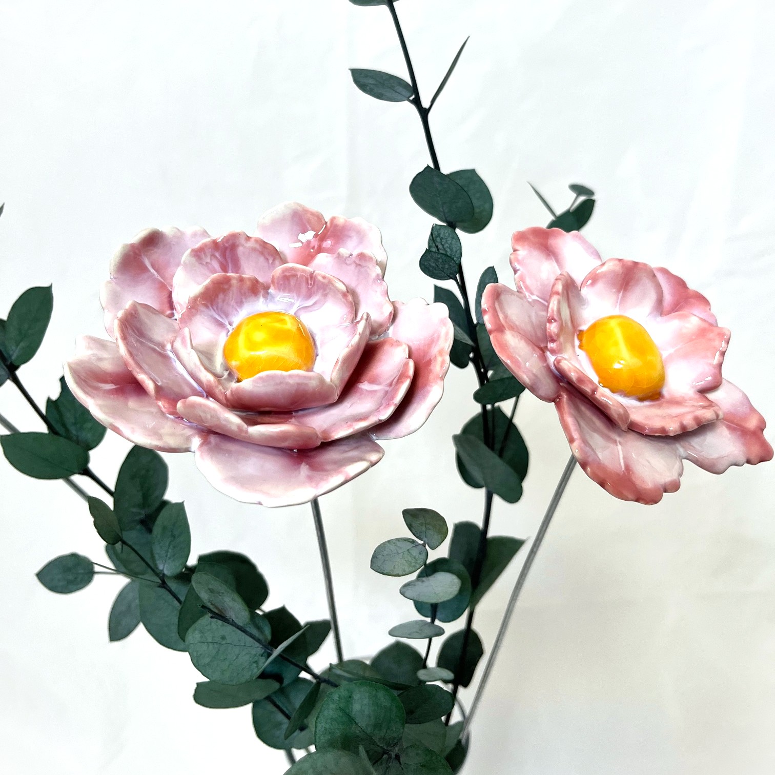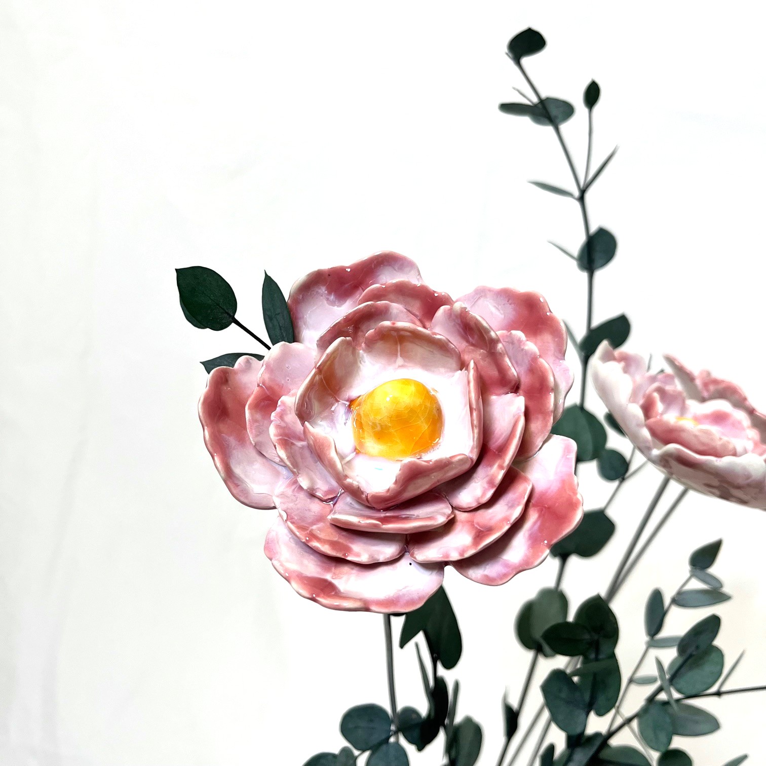 Pivoine en Céramique de 60 cm de hauteur et entre 11 et 12 cm de diamètre.
